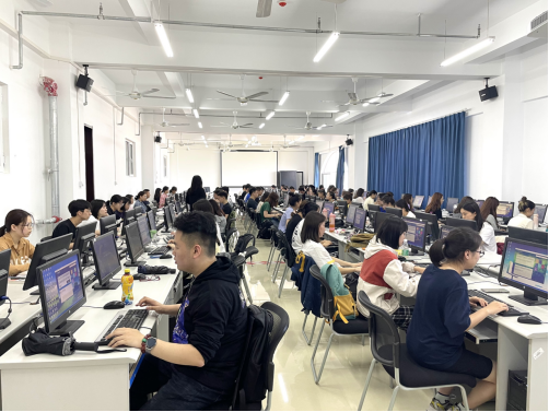 Ready go!比赛开始后,实验室内只剩下键盘敲打的声音,让这个比赛多了一丝紧张的气氛,学生们各个眼神专注,执着于电脑上的数字与符号,通过练习赛——第一轮初赛——第二轮初赛,20位学生锋芒毕露,崭露头角。