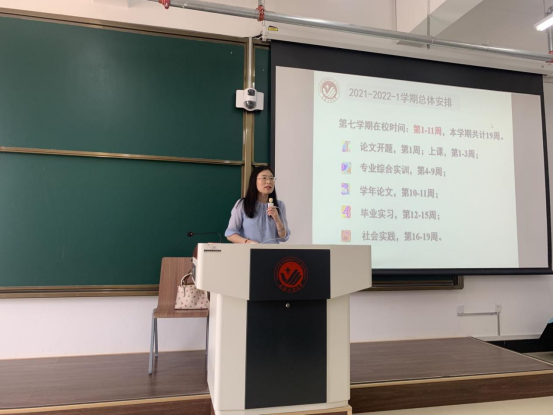 首先,副主任高鹤向与会教师和学生详细解读了2021-2022学年第一学期2018级国贸专业学生的相关工作安排,从论文开题、专业综合实训、学年论文三个方面对在校期间的工作进行部署和说明。同时高鹤老师指出,学生离校参加毕业实习和专业实践也需及时和指导老师沟通,避免出现“离校失联”现象,教师要随时关注学生动态,学生也需要及时向指导教师汇报工作进展。