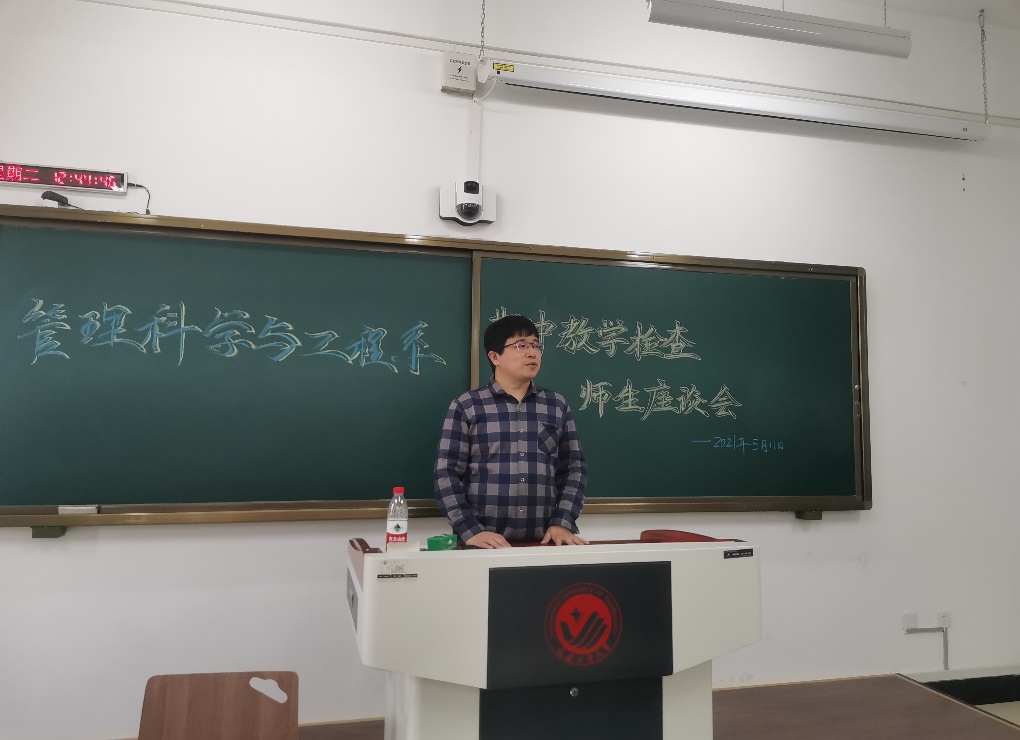 按照学校和学院关于期中教学检查的有关要求,为进一步了解学生在本学期课程教学、课余生活中存在的问题,管理科学与工程系于2021年5月11日中午12:40在北湖东区主楼450教室召开了期中教学检查师生座谈会。会议由管理科学与工程系副主任董睿主持,2018、2019、2020级信息管理与信息系统、电子商务专业班长、团支书和学委等学生代表参加了本次会议。