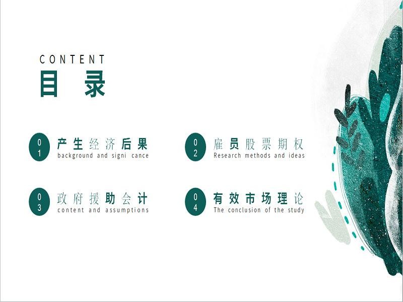 首先是由梁蕾同学为我们讲解的“经济后果”,她将这一内容分成了四部分,分别是:产生经济后果、雇员股票期权、政府援助会计和有效市场理论。她先后通过对这四部分内容简明扼要的描述,为我们理清了经济后果在市场中扮演的角色及其所在的地位。