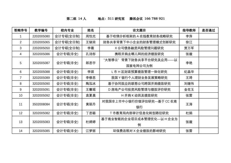 需参加答辩学生共56人。其中会计专硕(全日制)45人、会计专硕(非全日制)11人。