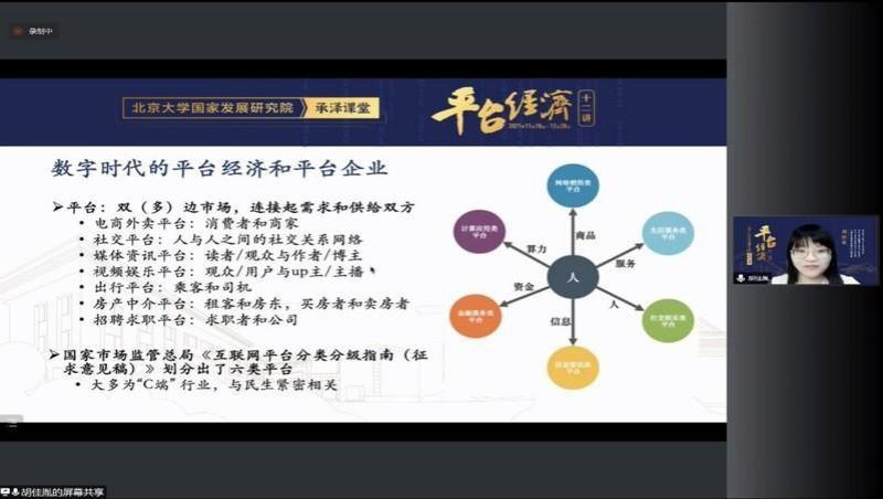 基于此,在2021年11月25日晚上20:00,北京大学国家发展研究院助理教授、北京大学数字金融研究中心研究员、北京大学中国经济研究中心研究员胡佳胤老师为我们带来了“北京大学国家发展研究院承泽课堂平台经济第十二讲之第三讲——我们有多依赖平台?平台经济和平台企业的中美比较”。该直播向大家解释了这三个问题。本次直播由北京大学国家发展研究院沈艳教授主持。全体会计硕士在纪晶华教授的组织下观看了本次直播。