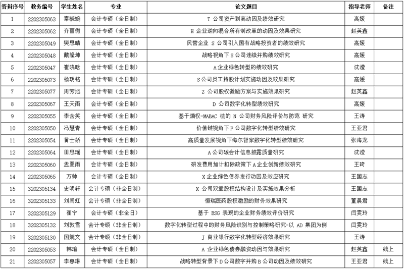 需参加答辩学生共42人。其中会计专硕(全日制)34人、会计专硕(非全日制)8人。