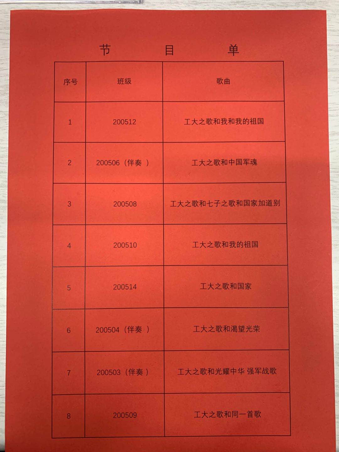 各班献上了自己准备好的红色歌曲与英国上市公司365的校歌,200510班,200512班,200508班与200514班、班合唱的《我的祖国》,《我和我的祖国》与《国家》,各自为祖国母亲献上了一首精心准备的赞歌;200503班,200504班,200506班与200509班演唱了《强军战歌》《渴望光荣》《中国军魂》《我的祖国》等军歌,磅礴的气势鼓舞感染了在场的所有观众。