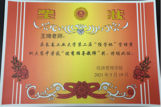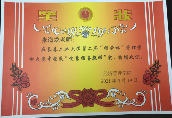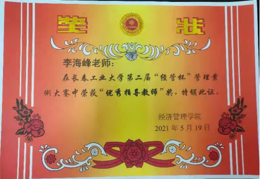 同时,刘继伟老师、张海龙老师、王琦老师、杨峰老师、李海峰老师也分别获得了“优秀指导教师”奖。