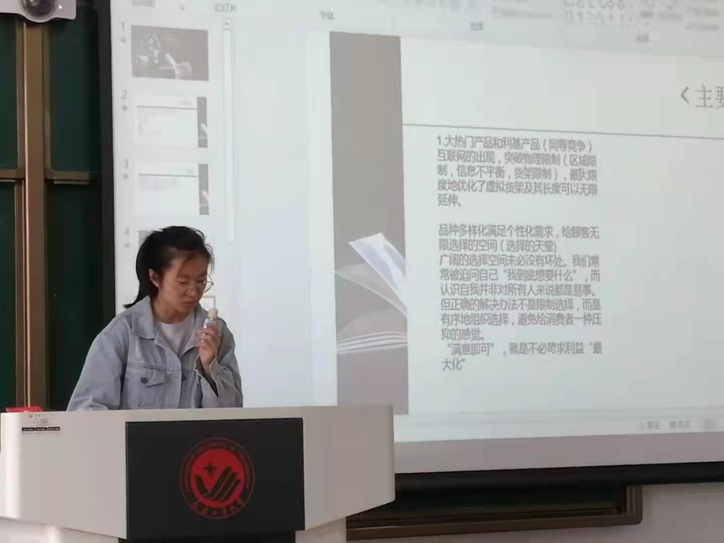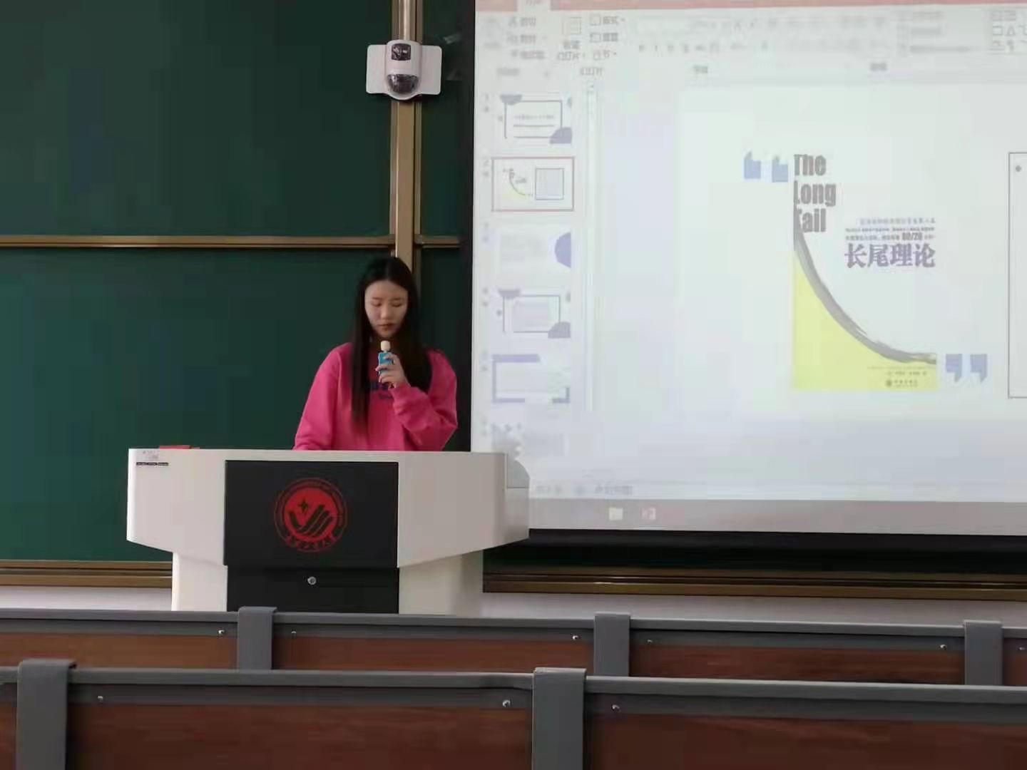 第二位分享的同学是190502班的张赫洋,她向我们阐述了网络时代是发挥“长尾效益”的时代以及无论是小众产品还是热门产品,选择适合自己的方式最重要等观点。