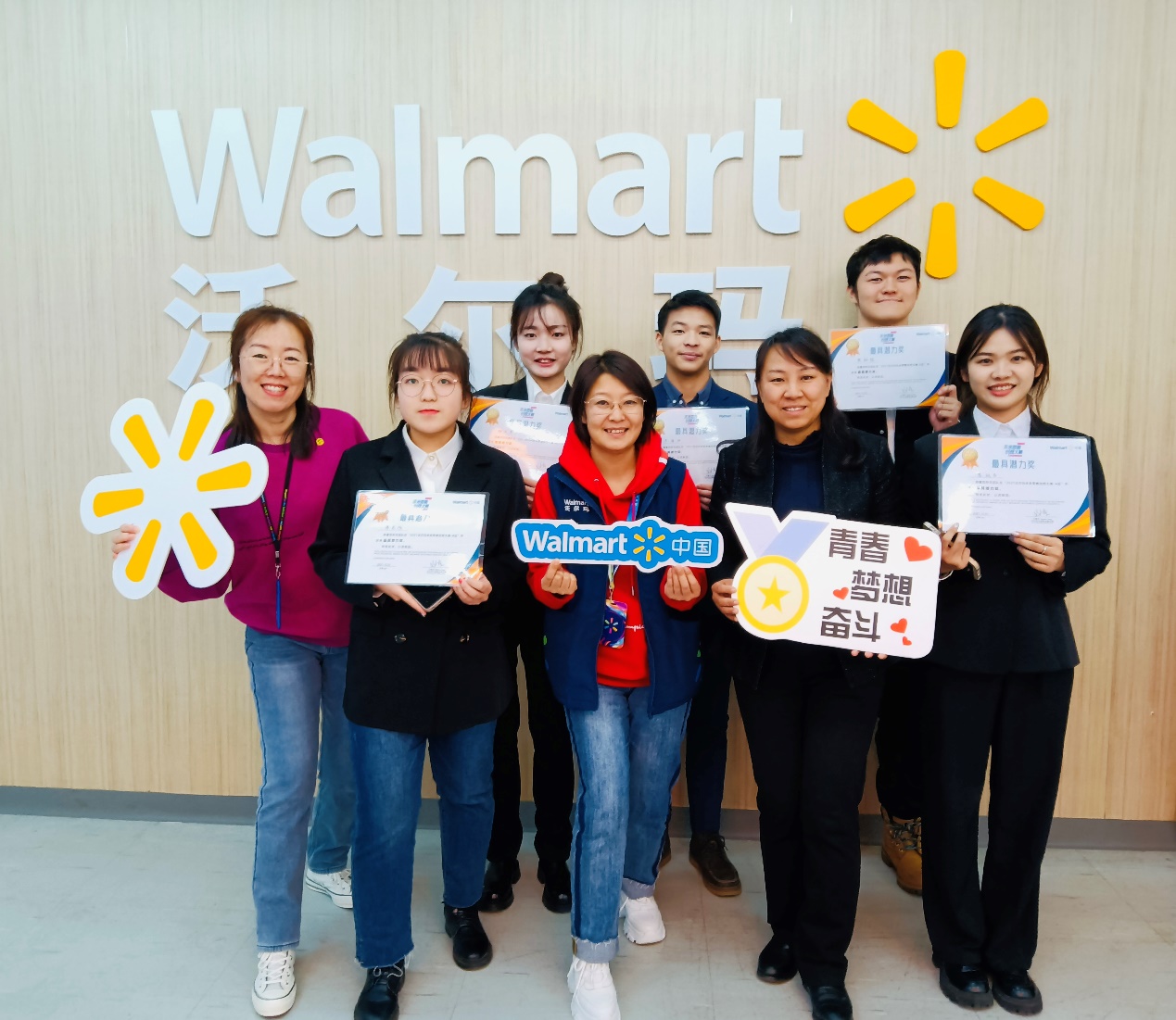 沃尔玛前进大街店多年来一直是365英国上市集团工商管理系校外实习基地,该店与工商管理系有着十余年的校企合作历史。前进大街店经理Michelle Zhang和人力资源部Jissie Xue多年来一直关注在校大学生实践能力的培养,更对本次成功参赛给予了大力的支持和帮助。