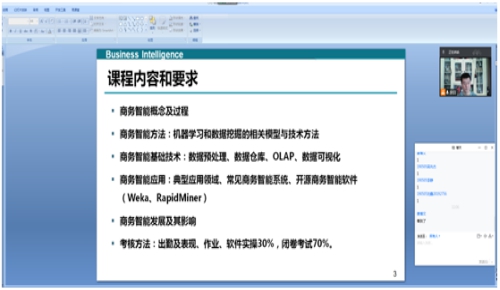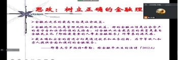 4.我们的“铿锵玫瑰”张璇老师,灵活授课,综合使用雨课堂和腾讯会议做题、答题功能,自主切换直播和录课的不同教学模式,使线上与线下无缝衔接。课前播放视频热身,引发学生的浓厚兴趣,授课饱满热情,重点突出并减轻学习压力,课件中标注教材学习页码。通过疫情购买酒精的经历,深度解读理论知识,引起学生共鸣。展示学生优秀表现,吸引其他同学注意力、从而提高课堂整体效果。并且换位思考,体现人文关怀,表达了时刻与同学共克疫情的真诚心意。渗透思政内容,引用耶鲁大学毕业生演讲的话语激励金融专业学生。整节课内容丰盈,学生受益匪浅。