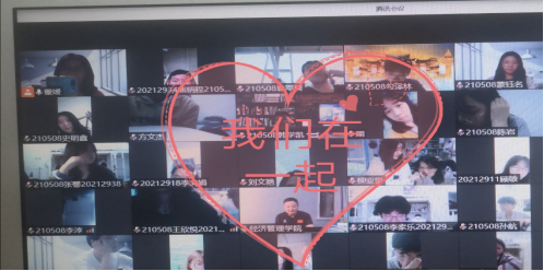 伴随《光辉岁月》的音乐声本次班会结束了,同学们仍感意犹未尽,张院长热情地和我们道别,我们也纷纷在聊天区留言表示感谢,盼望早日“面对面”相见。我们是这样的的幸运,拥有这样的师长,虽然我们身处云端两侧,但彼此心与心之间是相通地。最后210508班全体同学,希望疫情快一点过去,我们一起去追寻星辰大海。