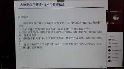 董睿老师在班导师会议中以多类型主题定期组织师生交互活动,致力于在丰富学生课余生活的同时为其传递精神食粮。通过结合社会实际情况讲解当前信管专业就业和考研的主要方向,使同学们对未来发展增进了解,鼓励其在大学时期要充分挖掘自身专长、利用所学知识培养社会竞争优势。适时分享具有创意的小视频,告诉同学们要树立职业平等观,各行各业的劳动者都在为社会主义建设作贡献。组织成语接龙等益智小游戏,在开通脑筋的同时活跃班级气氛。邀请企业专家为全班同学进行授课,结合企业实例讲解数字化的相关知识,增进了同学们对企业数字化转型的理解。