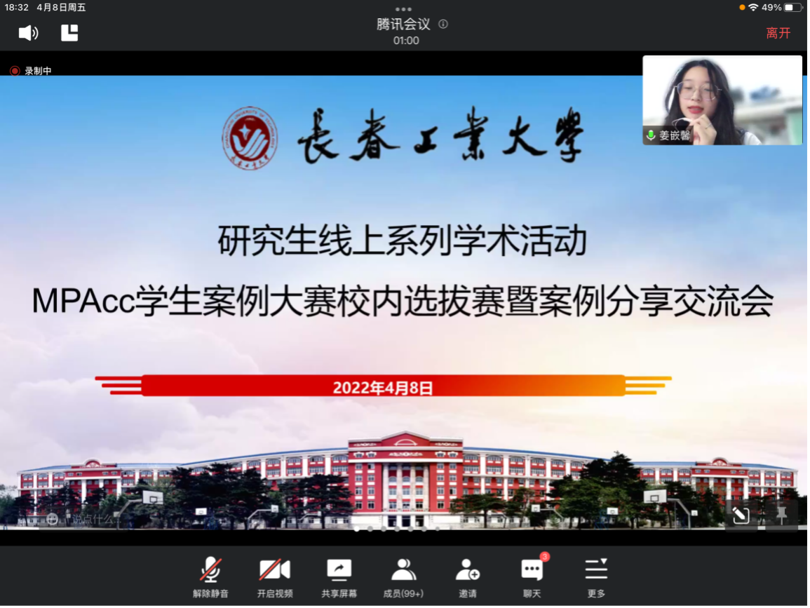 为提高研究生案例分析能力,提升学生科研水平,增强科研交流氛围,4月8日晚18:30365英国上市集团举办了研究生线上系列学术活动——MPAcc学生案例大赛校内选拔赛暨案例分享交流会。365英国上市集团硕士生导师及在读研究生等120余人参会并进行交流。大赛评委由中准会计师事务所高级会计师侯晓红、程腊梅教授、于立教授、李涛教授以及金花玉副教授组成。研究生辅导员助理姜嵌馨主持本次活动。