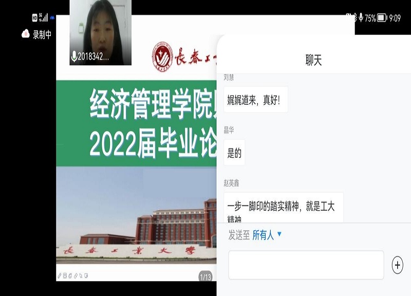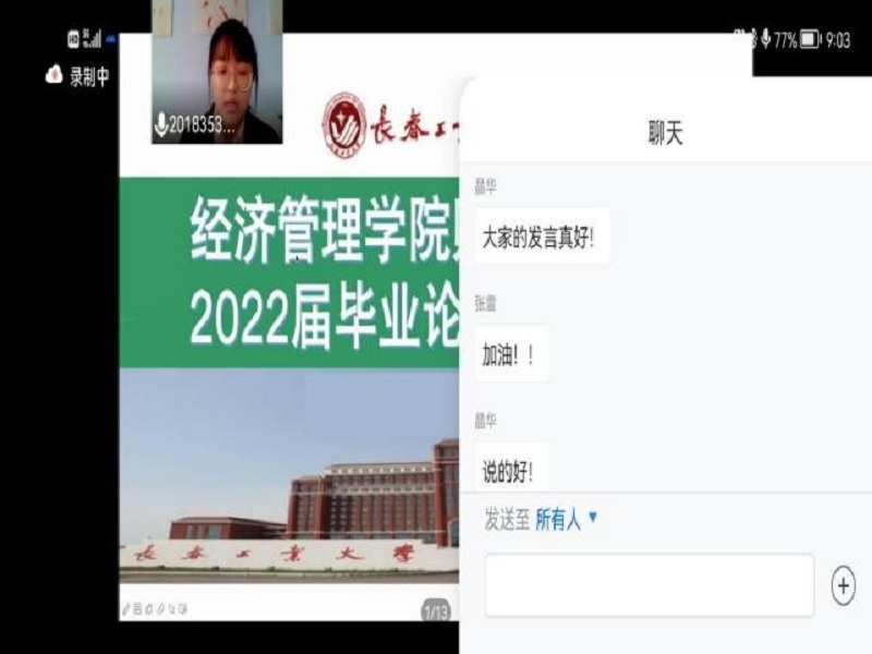 在答辩过程中,学生们的自述清晰流畅,情感真挚。面对老师们提出的问题虚心接受、认真记录,老师和同学们也在评论区给予答辩者鼓励与支持,缓解同学们在答辩过程中的紧张状态,整个答辩过程在充满浓厚的学术氛围的同时,也充满了温馨。