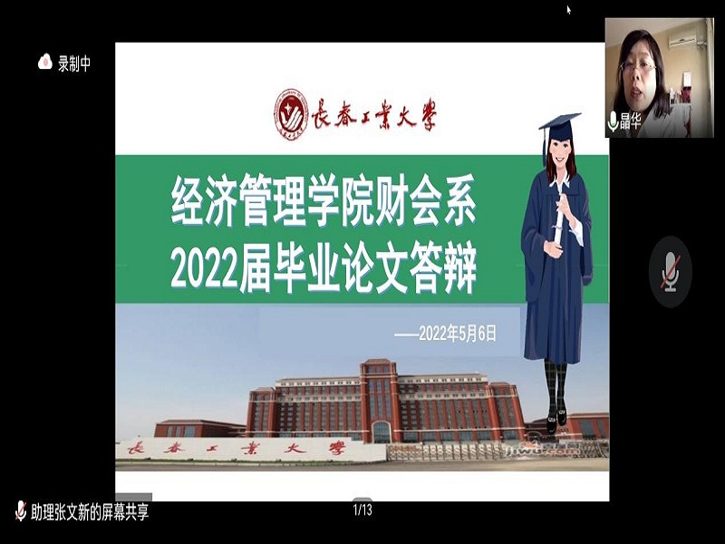 365英国上市集团财会系2022届本科毕业论文(第一批)线上答辩会于2022年5月6日在腾讯会议上顺利举行。答辩组长财会系主任纪晶华,秘书刘慧,答辩组成员高媛、张雷、徐江、赵英鑫、赵晔、李佳蔚,以及财会系所有指导教师均视频参加。此次参加答辩的有会计学专业53人;财务管理专业32人;会计学第二学位3人共计88名。财会系毕业生逐一进行,下面让我们来看看精彩的答辩过程。