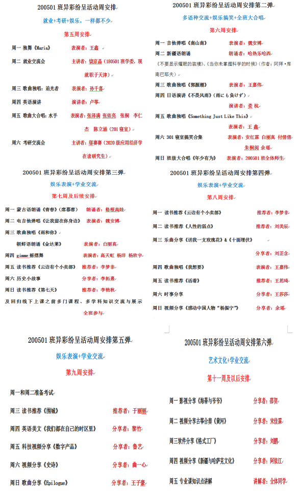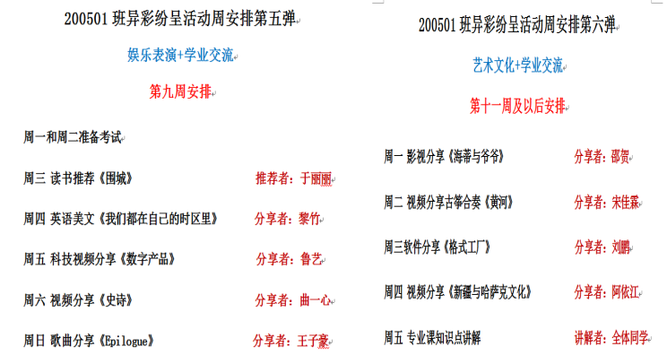 200501班异彩纷呈活动周开展以来的精彩内容安排