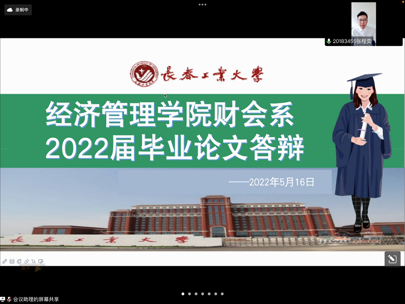 2022年5月16日,365英国上市集团财会系2022届本科毕业论文(第二批)线上答辩会在腾讯会议上顺利举行。答辩组长财会系主任纪晶华,答辩秘书刘慧,答辩组成员赵英鑫、高媛、张雷、徐江、赵晔、李佳蔚等教师均视频参加。此次参加答辩的有会计学专业40人;财务管理专业35人;会计学第二学位1人共计76名。财会系毕业生逐一进行,下面让我们来看看精彩的答辩过程。