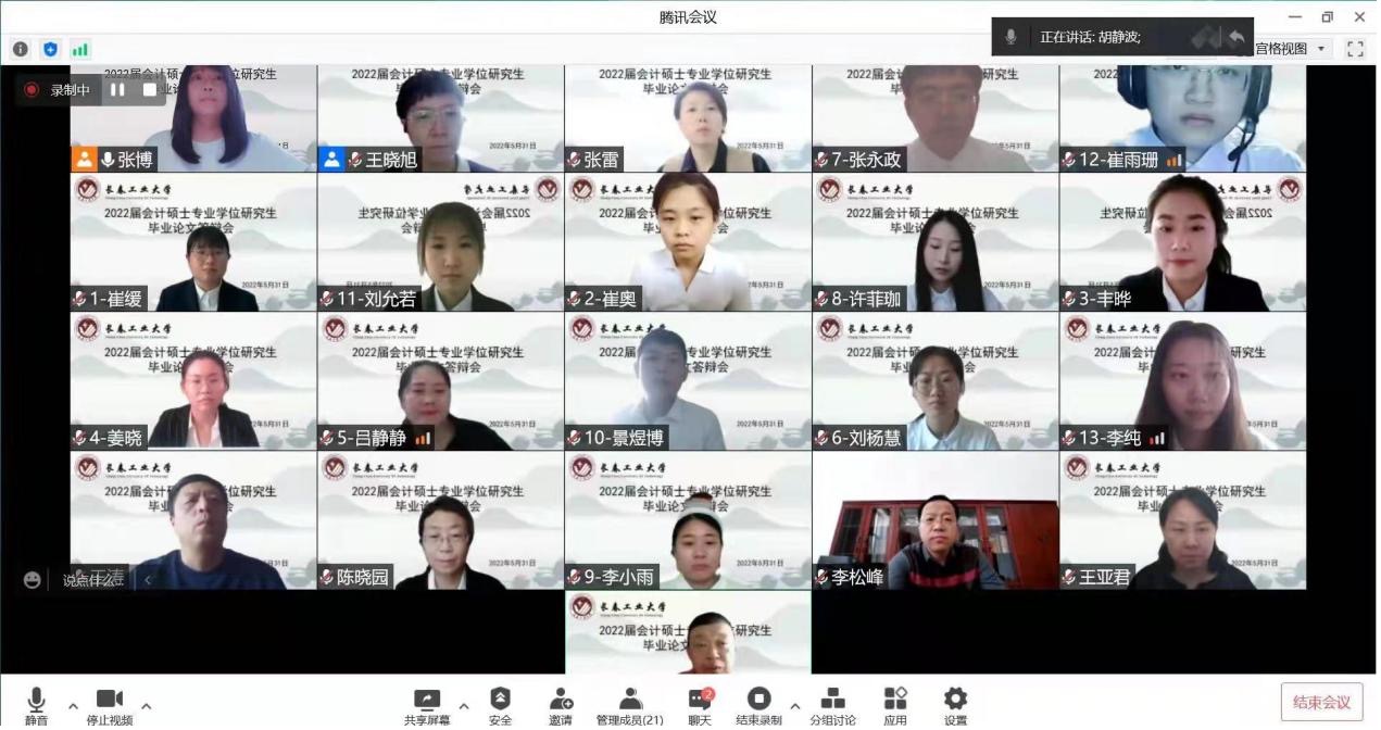 2022年5月31日下午12点30分,英国上市公司365MPAcc教育中心根据学校研究生院研究生培养工作的总体安排和部署,组织了2022届MPAcc硕士毕业答辩。本次毕业答辩采用了腾讯会议线上答辩的方式,下设了4个答辩小组,共涉及54名学生。其中19级会计专硕52人,18级会计专硕2人。答辩过程全程记录,同时低年级同学也可进入会议进行观摩学习。
