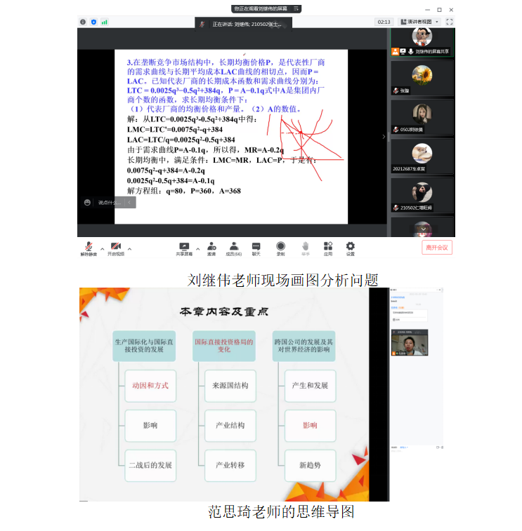 为了提高线上授课的授课和学习效率,经济系的老师们对课程设置都进行了调整。紧跟学科发展前沿更新课件内容,追踪时事和政治经济形势更新充实思政元素,在课堂中增加互动环节,提前制作和精心挑选与课程内容相关的小视频,设置预习及复习任务,为学生发送电子版教材……