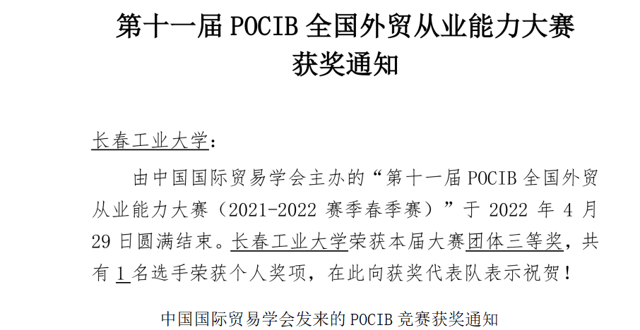 除了参加本系组织的竞赛外,经济系的老师们还鼓励和组织同学们参加其他有影响力的各种竞赛。高鹤、范思琦等指导学生的大创项目参与了结项验收,其中范思琦指导的学生组还获得了优秀的好成绩。刘丽琴、张博等老师组织学生们申报了2022年的大创项目和互联网+项目。崔月慧和刘丽琴指导学生参加了“第十一届POCIB全国外贸从业能力大赛”,并获得团体三等奖和个人三等奖的好成绩。