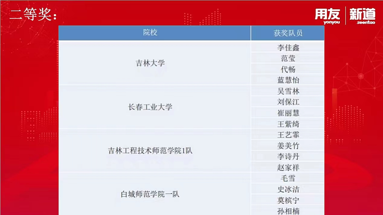 2022年7月12日,第三届“新道数智人才杯”全国高等院校数智人力大赛(人力资源大数据赛项)吉林赛区竞赛圆满收官。经过激烈而紧张的10天竞赛比拼,由工商管理系王亚君老师和王明昊老师指导的两个代表队分别获得了大赛一等奖和二等奖的好成绩。其中韩耀旭、熊柄程、邱锦涵、宋子涵代表队获得省赛一等奖,吴雪林、刘保江、崔丽慧、王紫绮代表队获得省赛二等奖,英国上市公司365代表队成功晋级全国总决赛。