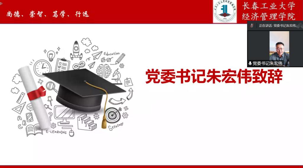 本次入学教育大会对研究生新生有着十分重要的意义。希望同学们自强不息、不待扬鞭自奋蹄,梳理正确价值观,加强道德修养,明辨是非,做一名崇高理想的实践者。