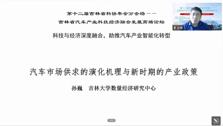 吉林大学商学与管理学院教授,教育部人文社科重点研究基地吉林大学数量经济研究中心主任,吉林省汽车精益管理学会副理事长孙巍作题为《汽车市场供求的演化机理与新时期的产业政策》的报告。