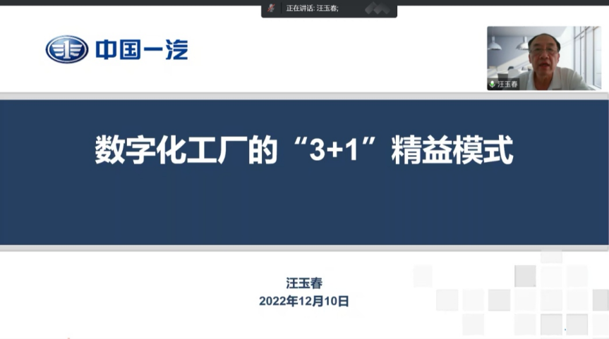 吉林省汽车精益管理学会副理事长,原一汽轿车股份有限公司党委书记汪玉春作题为《数字化工厂的“3+1”精益模式》的报告。