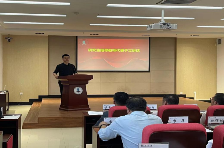 研究生指导教师代表于立劝告学生要远离浮躁、注重学习过程与能力提升,增强新事物敏感度以及共同营造融洽和谐的师生关系。