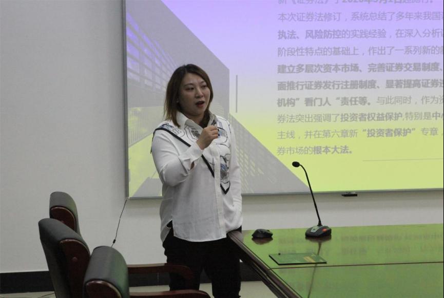 授牌仪式后,由申银万国研究所分析师王璐进行宏观经济形势与金融市场分析,着重分析当前宏观经济发展趋势,探讨金融市场的动态变化及其对产业发展的影响以及讲解宏观经济知识。由申万宏源证券投教基地负责人冉倩之进行金融职业规划,指导学生如何进行职业规划,介绍证券市场的基本知识和投资策略。