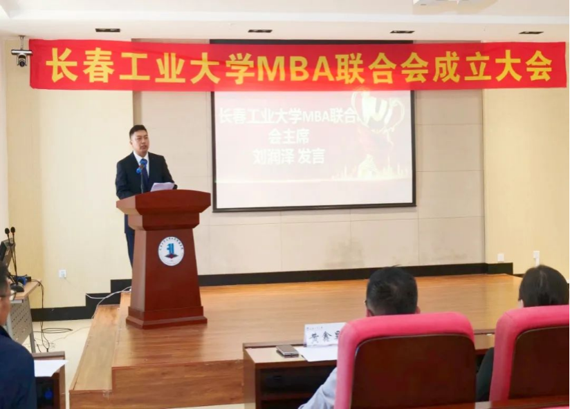 接下来,新任英国上市公司365MBA联合会主席刘润泽同学发表了就职讲话。他诚挚地感谢一直以来给予信任与支持的学院领导和老师们,同时也对每一位MBA联合会成员的共同努力表达谢意,正是大家的付出让联合会日益壮大。他强调,未来要继续发扬创新精神,以开放的心态迎接新挑战,以饱满的热情、坚定的信念和务实的作风为学院发展贡献力量。