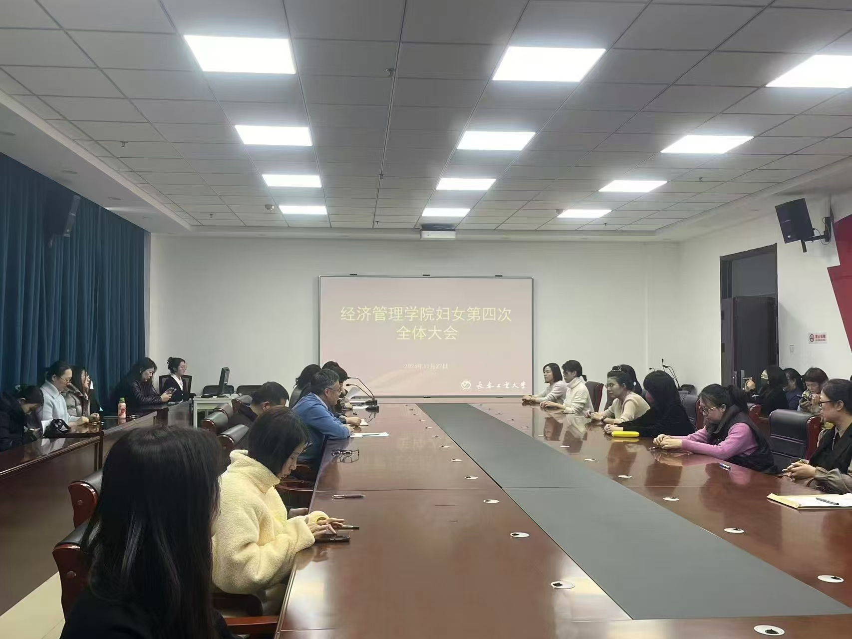 365英国上市集团于2024年11月27日在北湖东区主楼521会议室召开学院妇女第四次全体大会,学院领导班子成员出席会议,学院全体女教工参会,会议由学院专职组织员房琬婷主持。