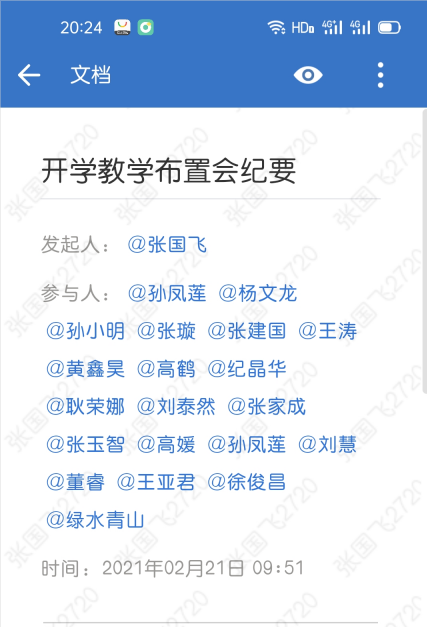 张玉智院长就开学前网络教学工作作了指示,他指出,教学工作是学校的重中之重,各位老师务必学习、领会通知精神,保证网络教学效果。同时对学院学科建设、科研以及研究生工作作了详细布置。