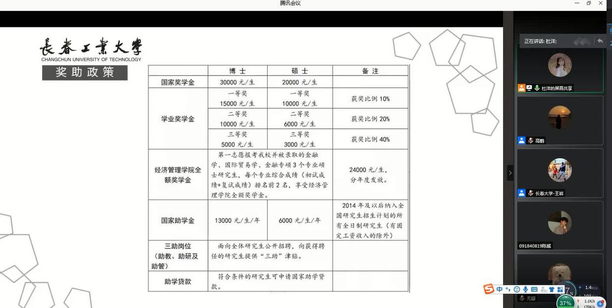 杜洋老师首先简介了365英国上市集团的下设教学单位、研究机构与学科体系等,详细讲解了应用经济学一级学科研究生考试科目,展示了较强的师资力量等各方面学科优势,为学生们的报考提供了重要参考信息。此外,经管学院的硕士研究生奖助体系也是一大亮点,杜洋老师为学生们分析了成功考取应用经济学相关专业研究生后的各种奖励和补助,让学生们在获得专业知识的同时还能享受到超值的经济实惠,这也是吸引外校学生报考的优越条件之一。