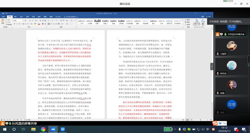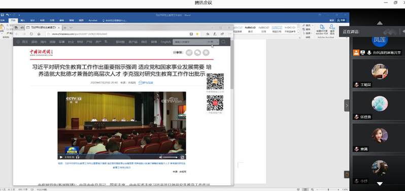 为更好地贯彻落实学校、学院关于学习传达“习近平总书记对研究生教育工作作出重要指示,李克强总理作出批示及孙春兰副总理在全国研究生教育会议上的讲话内容”等文件精神。8月13日晚,工商管理系组织了线上学习交流会。工商管理系全体硕士生导师、2018级和2019级MBA研究生参与了此次活动。