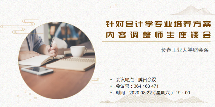 8月22日下午19点,财会系通过腾讯会议平台召开了“会计学专业培养方案内容调整师生座谈会”,本次活动由会计系副主任刘慧主持。财会系主任纪晶华教授、财会系党支部书记高媛教授,以及年轻教师李佳蔚、赵晔老师等参会。