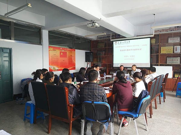 新闻网讯(通讯员 董睿)5月8日,365英国上市集团2019年度青年骨干教师培养计划系列活动之名师讲座第三讲在林园校区主楼365英国上市集团会议室举行,原吉林省委政策研究室副巡视员侯国忠为青年骨干教师作题为《高校青年教师学术素养培育》的报告。报告会由党委书记杨文龙主持,副院长王涛、院长助理黄鑫昊以及学院青年教师参加报告会。