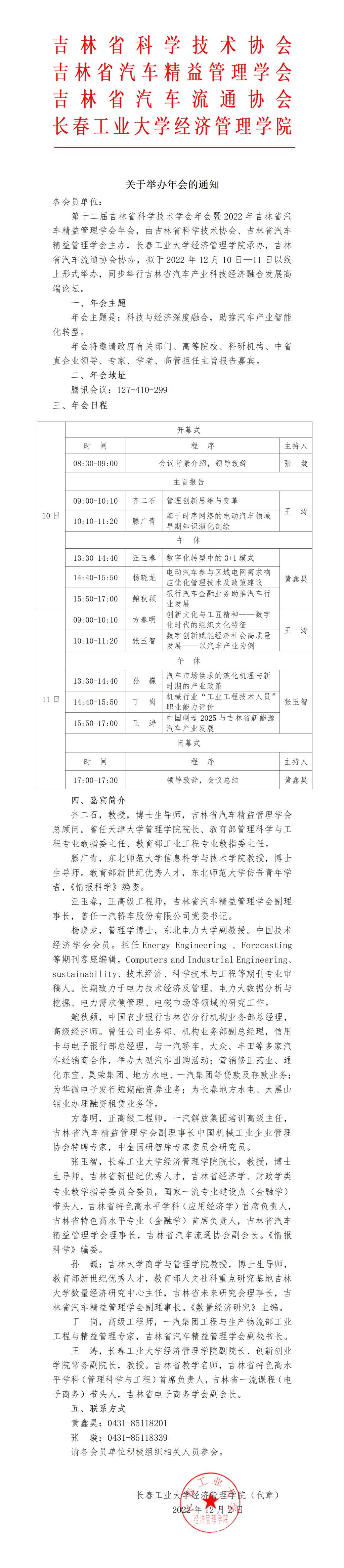 关于举办第十二届吉林省科学技术学会年会暨2022年吉林省汽车精益管理学会年会的通知