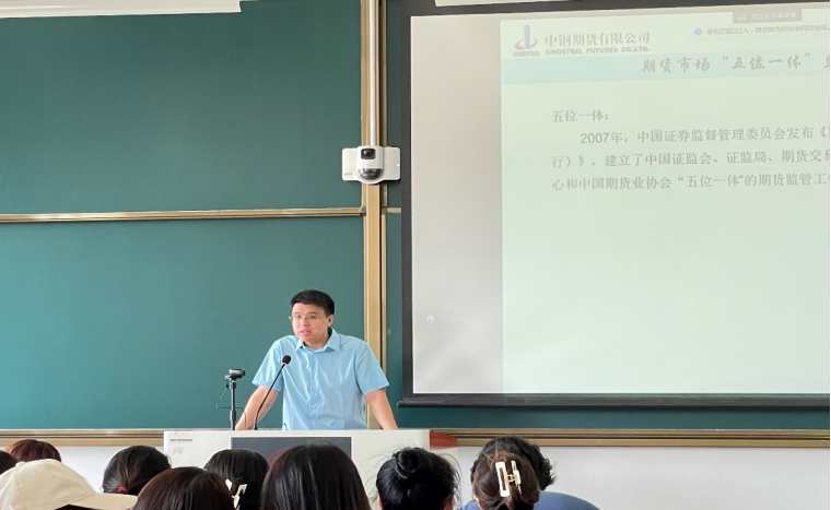 讲座分为期货知识普及和比赛交易讲解两部分。首先,高雪峰经理就期货市场发展现状、“五位一体”期货监管体系的实施、中国证监会的职能、地方证监会的职责、涨跌停板、交易限额、异常交易等制度进行详细阐述,对于各类实际交易可能遇到的情况以及应对方法也做出完整的介绍。